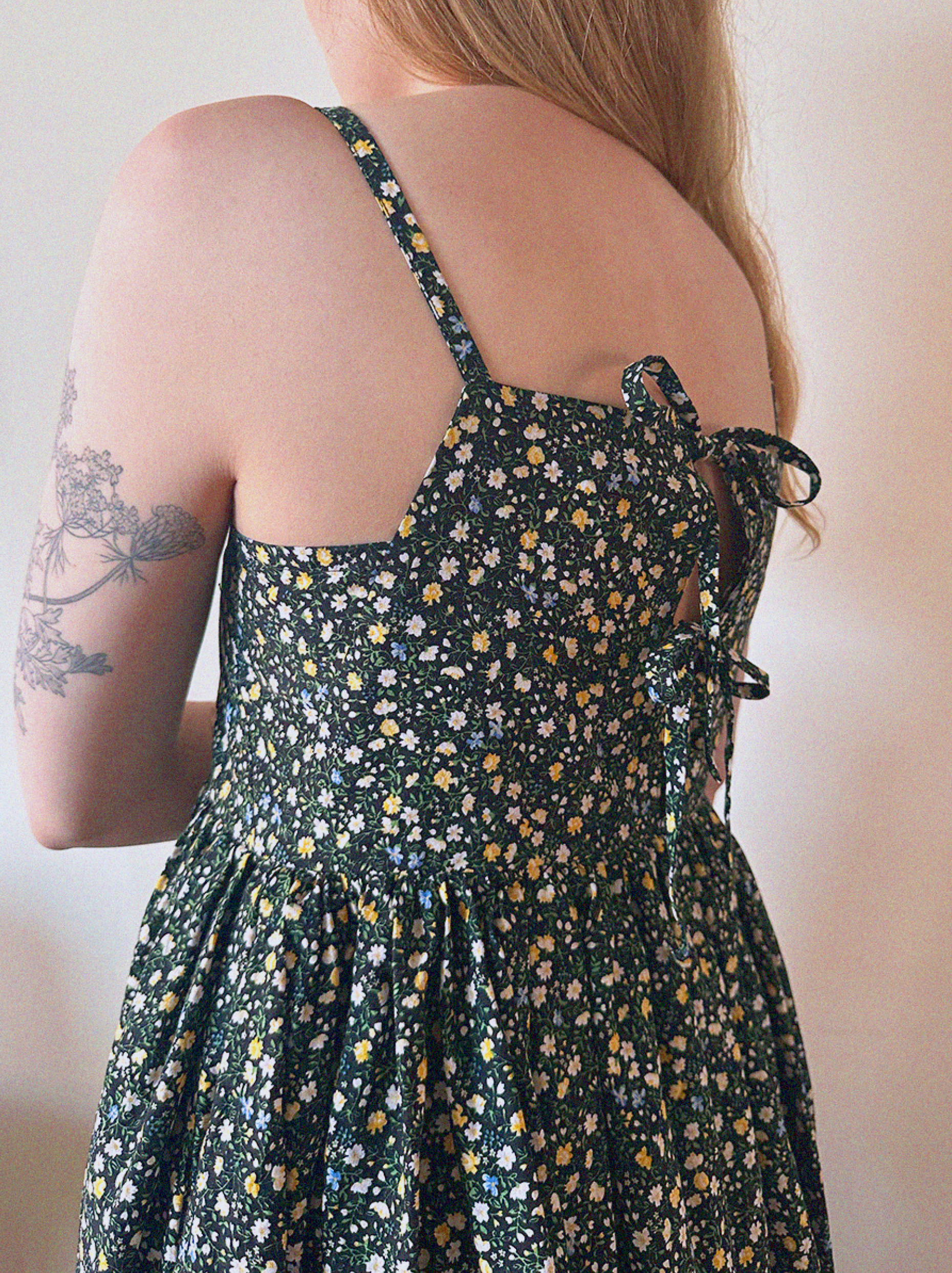emma is 5’ 9” & wears size M in most garments. she is pictured here in a M tie-back dress.