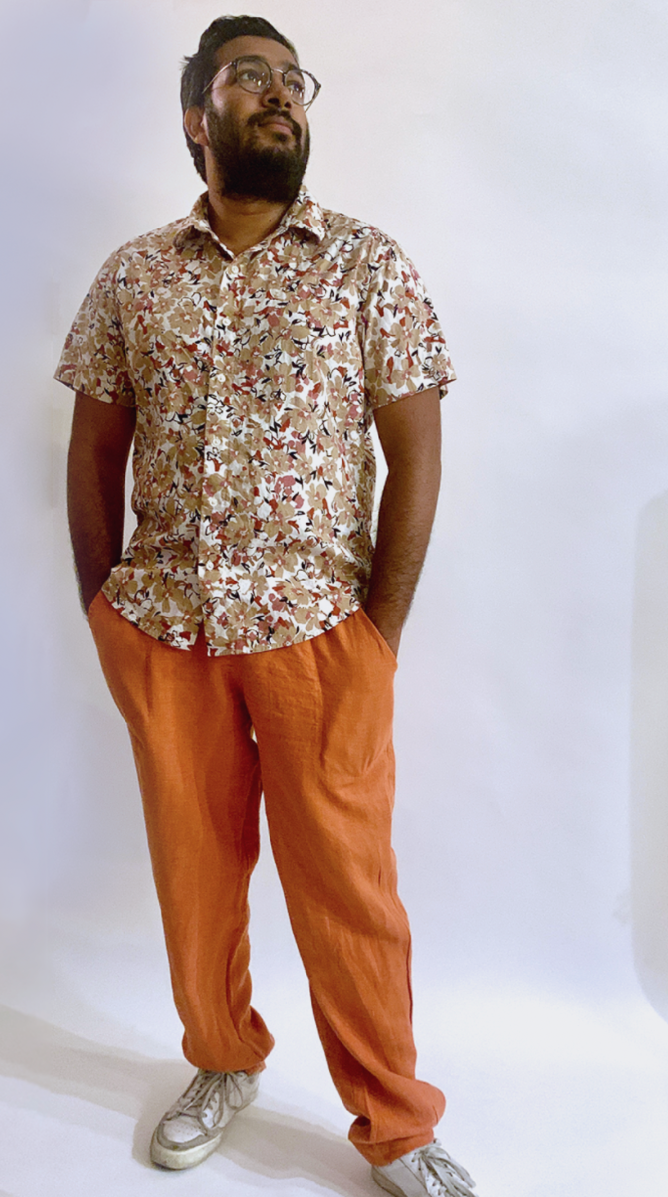 karthik is 5’ 9” & wears size XLin most garments. he is pictured here in XL sprout pants.