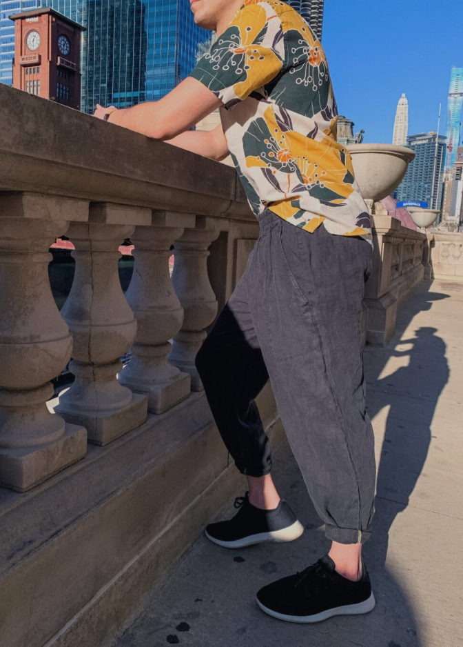 dom is 6’ 0” & wears size M in most garments. he is pictured here in M sprout pants.