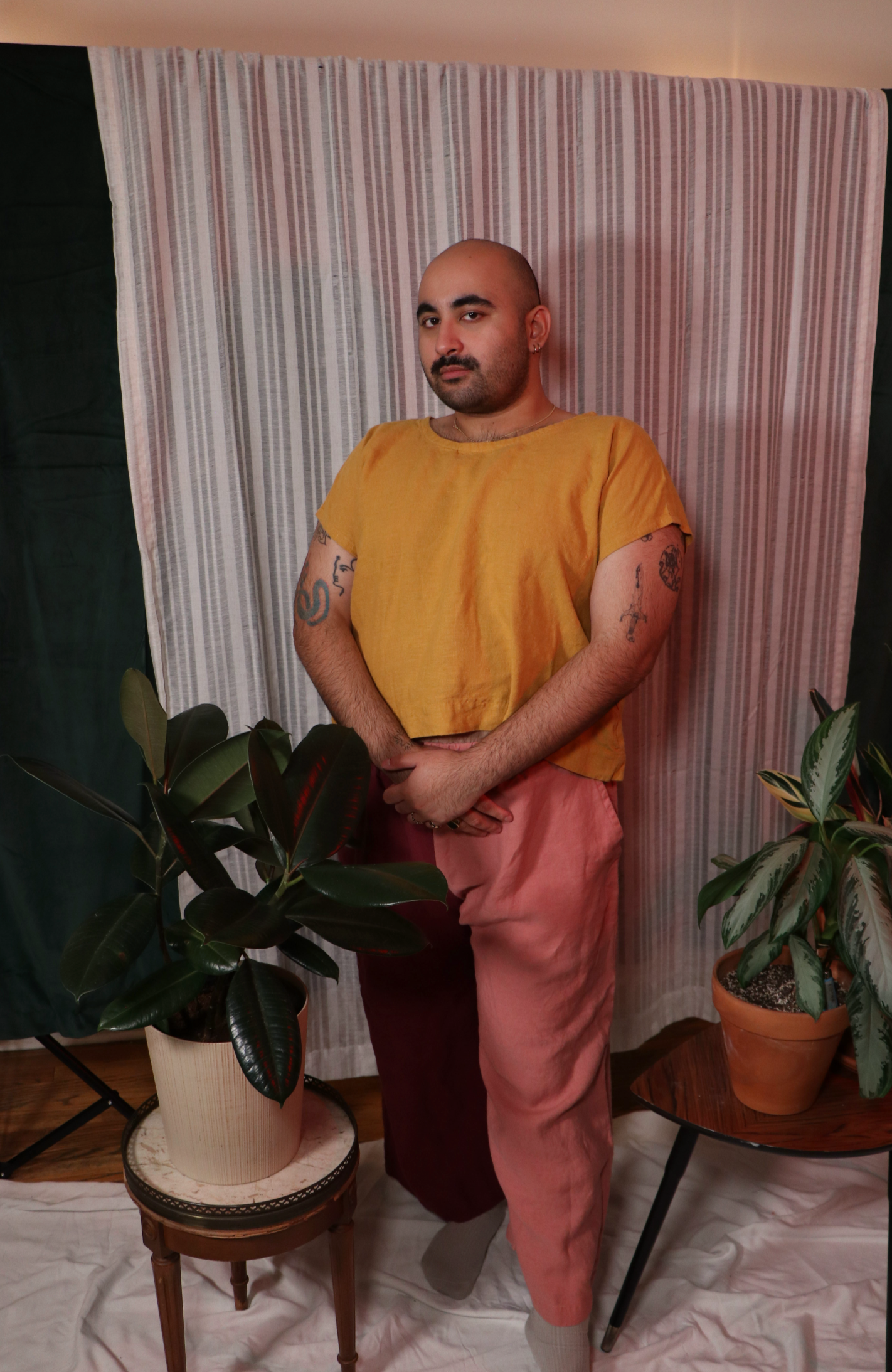 anwar is 5’ 9” & wears size 2XL in most garments. they are pictured here in a 2XL switchback top and 2XL home pants.